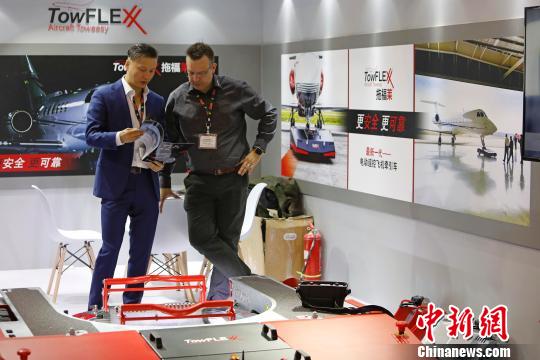 业内人士正在2019亚洲商务航空大会及展览会上洽谈商机。 殷立勤 摄